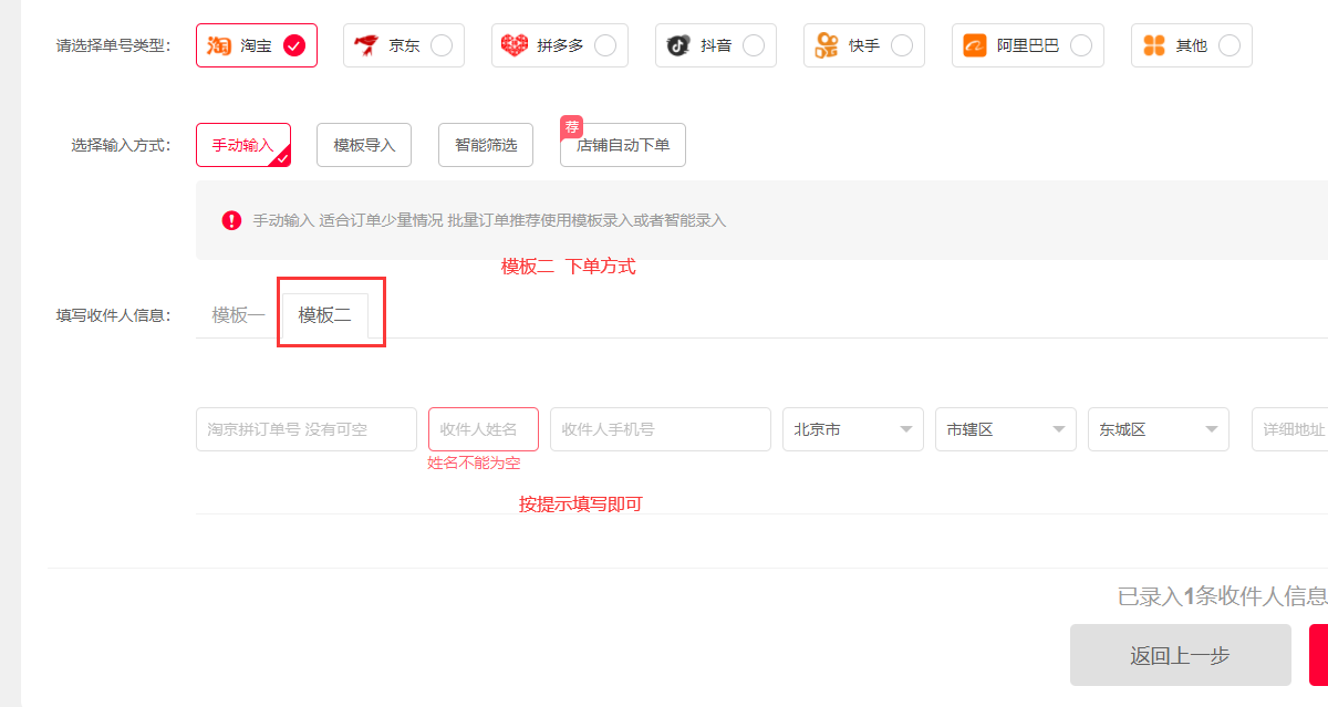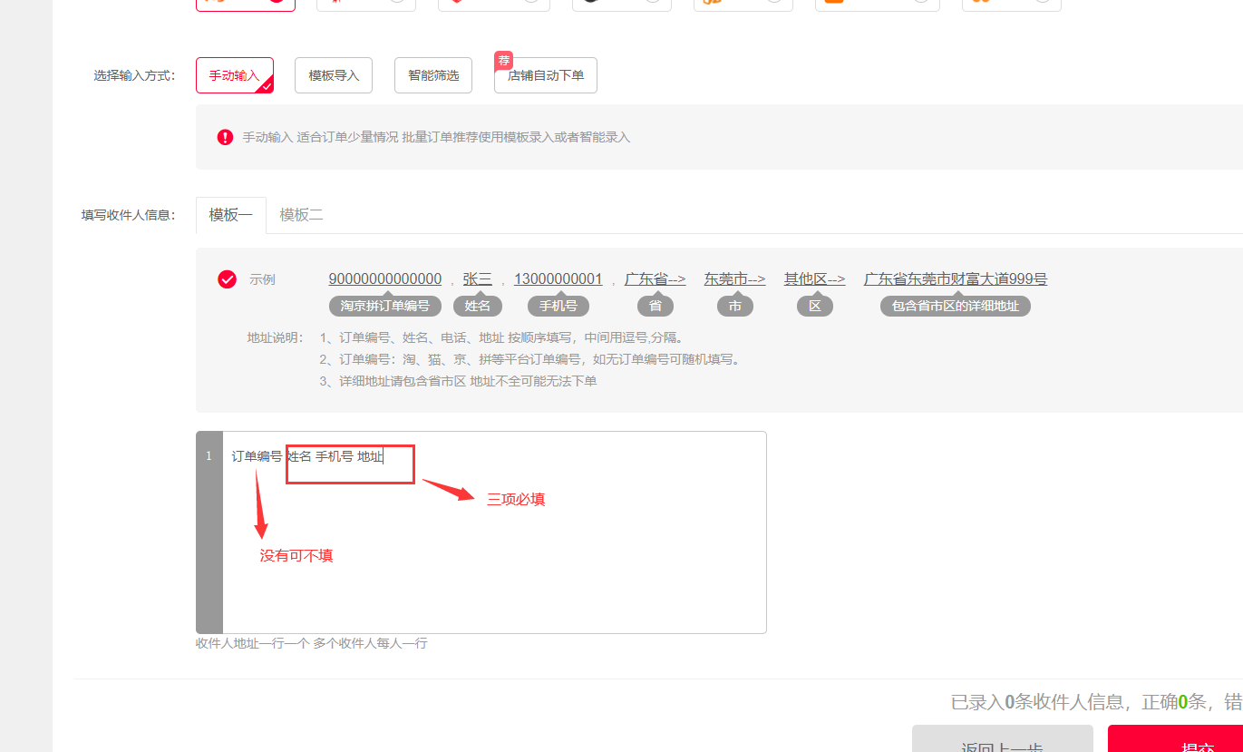 手动录入单号